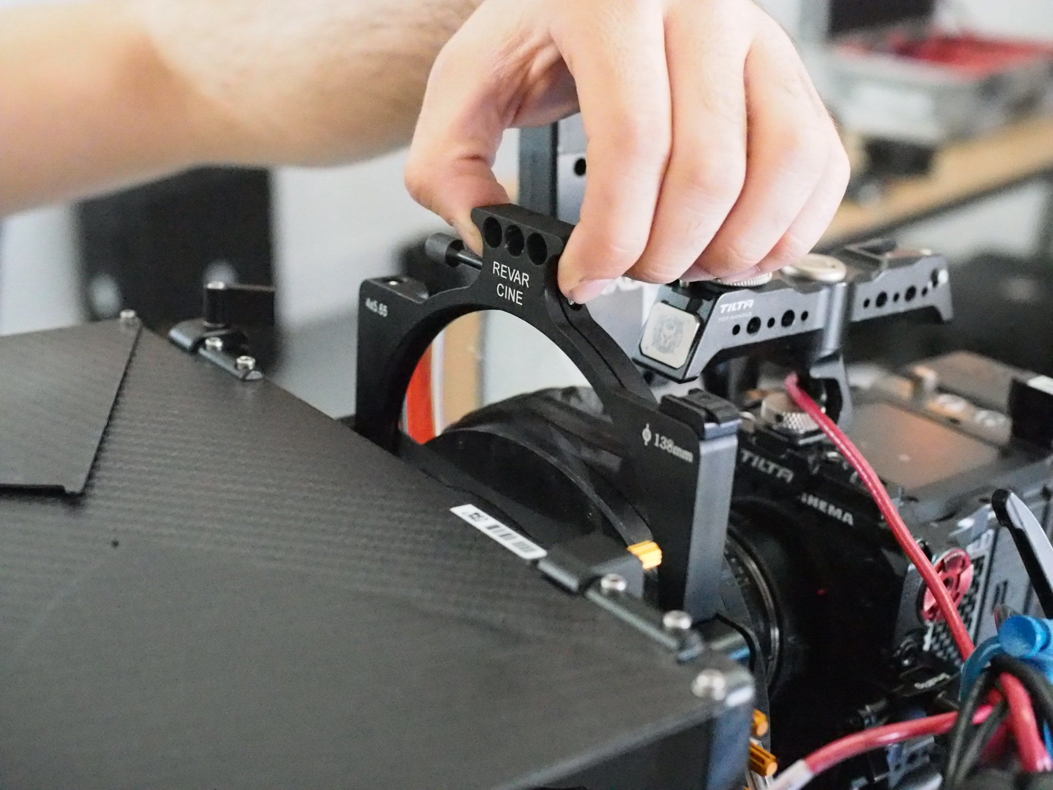 The Revar Cine 4×5.65 / 138mm Double and Triple Trays are engineered for precision, durability, and creative flexibility. Machined from all-metal construction for strength at minimal weight. The Double Tray securely holds up to a +2 diopter 138mm cinema filter, perfectly fitting into two slots of Arri-standard 4×5.65 matte boxes. The Triple Tray holds up to +3 diopters, occupying three slots of your matte box. Built-in 1/4‑20 threaded mounting points let you attach accessories like LIDAR cages or Noga arms for inventive placement of specialty diopters, while a safety catch ensures the tray stays in place, preventing accidental drops. Smooth, reliable, and versatile, the Double Tray is more than a filter holder—it’s a platform for creative control.